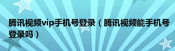 腾讯视频vip手机号登录(腾讯视频能手机号登录吗)