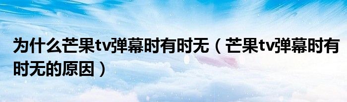 大家好,跳跳为你解答以上问题。为什么芒果tv弹幕时有时无,芒果tv弹幕时有时无的原因这个问题很多人还不知道,现在让我们一起来看看吧!