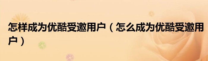 怎样成为优酷受邀用户(怎么成为优酷受邀用户)