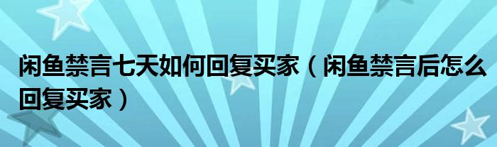 大家好,跳跳为你解答以上问题。闲鱼禁言七天如何回复买家,闲鱼禁言后怎么回复买家这个问题很多人还不知道,现在让我们一起来看看吧!