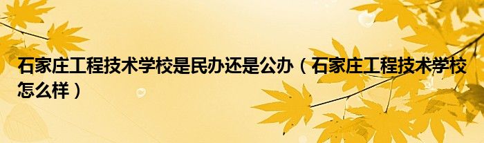 石家庄工程技术学校是民办还是公办(石家庄工程技术学校怎么样)