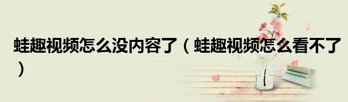 大家好,跳跳为你解答以上问题。蛙趣视频怎么没内容了,蛙趣视频怎么看不了这个问题很多人还不知道,现在让我们一起来看看吧!