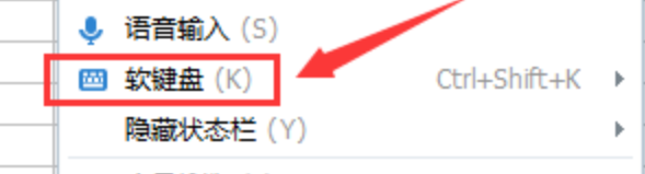2、然后我们右键点击“输入法”然后呼出操作菜单,我们点击“软键盘”按钮。