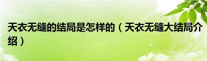 大家好,小晋来为大家解答以下问题,关于天衣无缝的结局是怎样的,天衣无缝大结局介绍很多人还不知道,今天让我们一起来看看吧!