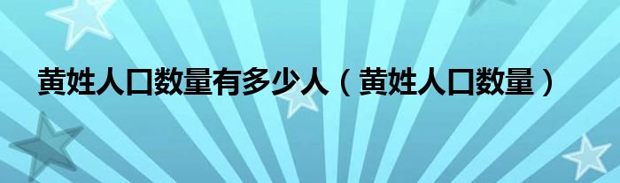 黄姓人口数量有多少人(黄姓人口数量)
