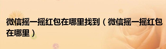 微信摇一摇红包在哪里找到(微信摇一摇红包在哪里)