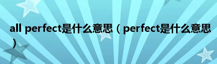 关于all perfect是什么意思,perfect是什么意思这个很多人还不知道,今天菲菲来为大家解答以上的问题,现在让我们一起来看看吧!