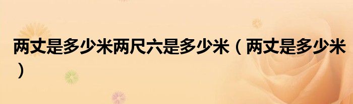 大家好,小晋来为大家解答以下问题,关于两丈是多少米两尺六是多少米,两丈是多少米很多人还不知道,今天让我们一起来看看吧!
