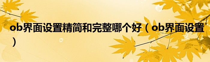 大家好,小晋来为大家解答以下问题,关于ob界面设置精简和完整哪个好,ob界面设置很多人还不知道,今天让我们一起来看看吧!