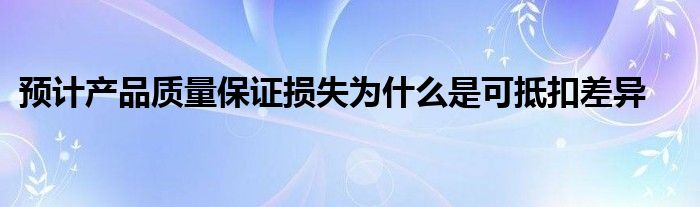 关于预计产品质量保证损失为什么是可抵扣差异这个很多人还不知道,今天菲菲来为大家解答以上的问题,现在让我们一起来看看吧!