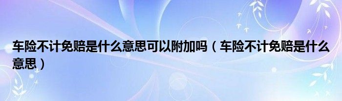 关于车险不计免赔是什么意思可以附加吗,车险不计免赔是什么意思这个很多人还不知道,今天菲菲来为大家解答以上的问题,现在让我们一起来看看吧!
