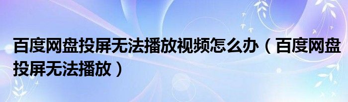 百度网盘投屏无法播放视频怎么办(百度网盘投屏无法播放)