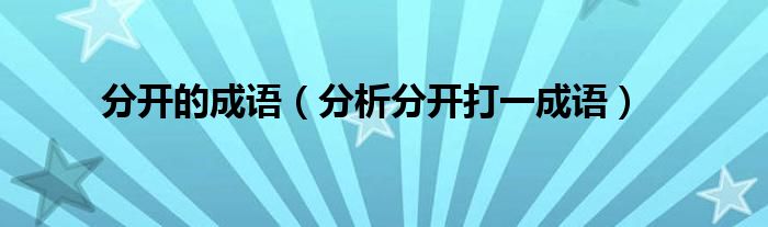 大家好,小晋来为大家解答以下问题,关于分开的成语,分析分开打一成语很多人还不知道,今天让我们一起来看看吧!