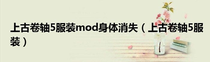 关于上古卷轴5服装mod身体消失,上古卷轴5服装这个很多人还不知道,今天菲菲来为大家解答以上的问题,现在让我们一起来看看吧!