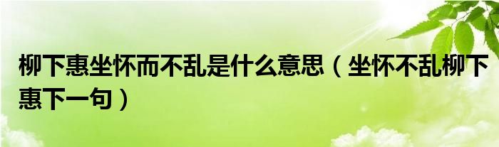 大家好,小晋来为大家解答以下问题,关于柳下惠坐怀而不乱是什么意思,坐怀不乱柳下惠下一句很多人还不知道,今天让我们一起来看看吧!