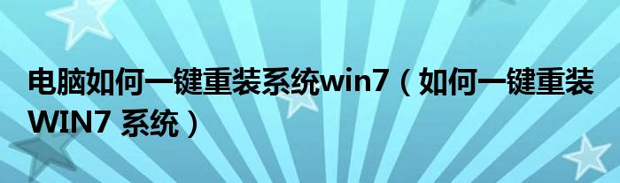 关于电脑如何一键重装系统win7,如何一键重装 WIN7 系统这个很多人还不知道,今天菲菲来为大家解答以上的问题,现在让我们一起来看看吧!