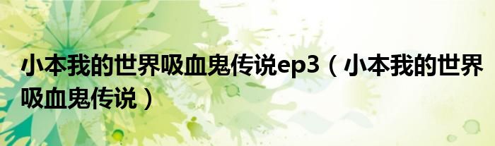 关于小本我的世界吸血鬼传说ep3,小本我的世界吸血鬼传说这个很多人还不知道,今天菲菲来为大家解答以上的问题,现在让我们一起来看看吧!