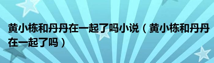 大家好,小晋来为大家解答以下问题,关于黄小栋和丹丹在一起了吗小说,黄小栋和丹丹在一起了吗很多人还不知道,今天让我们一起来看看吧!