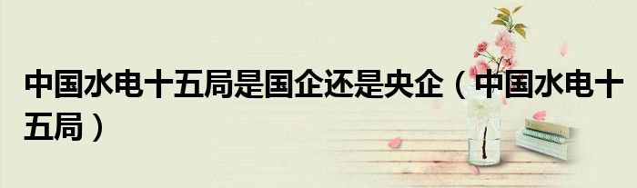 关于中国水电十五局是国企还是央企,中国水电十五局这个很多人还不知道,今天菲菲来为大家解答以上的问题,现在让我们一起来看看吧!