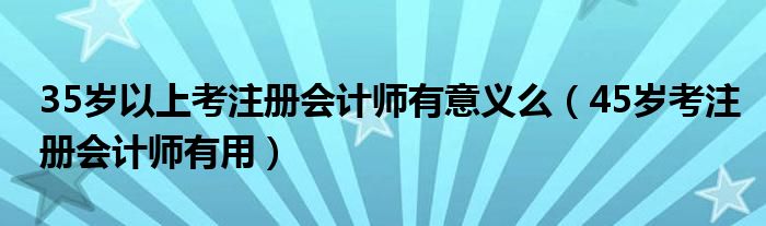 大家好,小晋来为大家解答以下问题,关于35岁以上考注册会计师有意义么,45岁考注册会计师有用很多人还不知道,今天让我们一起来看看吧!