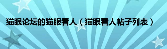 关于猫眼论坛的猫眼看人,猫眼看人帖子列表这个很多人还不知道,今天菲菲来为大家解答以上的问题,现在让我们一起来看看吧!