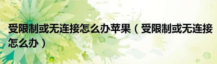 大家好,来宝来为大家解答以下问题,受限制或无连接怎么办苹果,受限制或无连接怎么办很多人还不知道,今天让我们一起来看看吧!