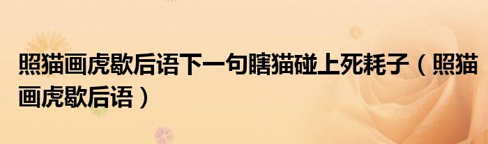 大家好,小晋来为大家解答以下问题,关于照猫画虎歇后语下一句瞎猫碰上死耗子,照猫画虎歇后语很多人还不知道,今天让我们一起来看看吧!