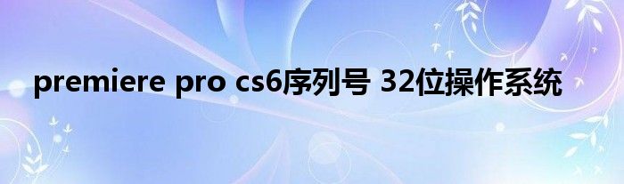 关于premiere pro cs6序列号 32位操作系统这个很多人还不知道,今天菲菲来为大家解答以上的问题,现在让我们一起来看看吧!