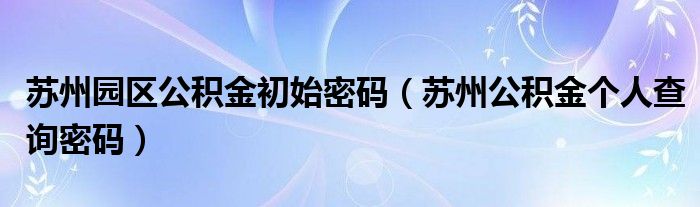 苏州园区公积金初始密码(苏州公积金个人查询密码)