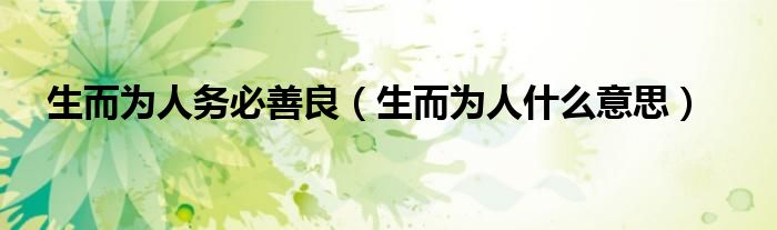 大家好,小晋来为大家解答以下问题,关于生而为人务必善良,生而为人什么意思很多人还不知道,今天让我们一起来看看吧!