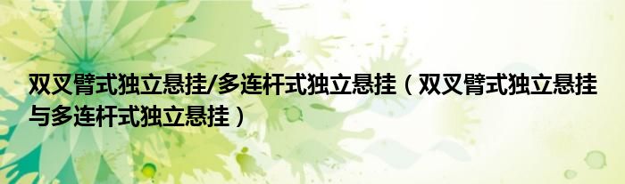 关于双叉臂式独立悬挂/多连杆式独立悬挂,双叉臂式独立悬挂与多连杆式独立悬挂这个很多人还不知道,今天菲菲来为大家解答以上的问题,现在让我们一起来看看吧!