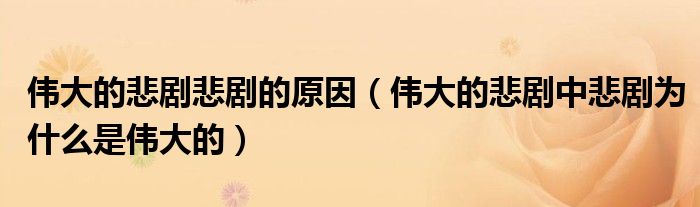 关于伟大的悲剧悲剧的原因,伟大的悲剧中悲剧为什么是伟大的这个很多人还不知道,今天菲菲来为大家解答以上的问题,现在让我们一起来看看吧!