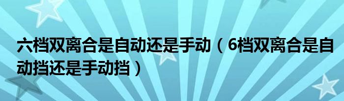关于六档双离合是自动还是手动,6档双离合是自动挡还是手动挡这个很多人还不知道,今天菲菲来为大家解答以上的问题,现在让我们一起来看看吧!