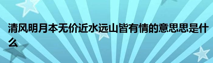 关于清风明月本无价近水远山皆有情的意思思是什么这个很多人还不知道,今天菲菲来为大家解答以上的问题,现在让我们一起来看看吧!