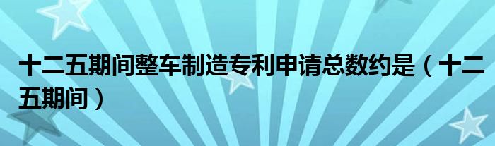 关于十二五期间整车制造专利申请总数约是,十二五期间这个很多人还不知道,今天菲菲来为大家解答以上的问题,现在让我们一起来看看吧!