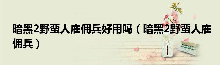 关于暗黑2野蛮人雇佣兵好用吗,暗黑2野蛮人雇佣兵这个很多人还不知道,今天菲菲来为大家解答以上的问题,现在让我们一起来看看吧!