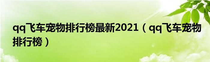 大家好,来宝来为大家解答以下问题,qq飞车宠物排行榜最新2021,qq飞车宠物排行榜很多人还不知道,今天让我们一起来看看吧!