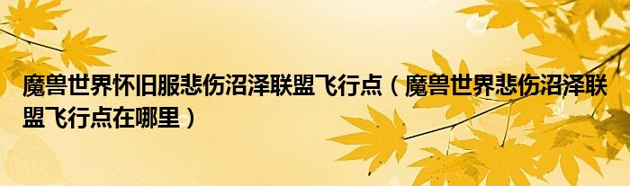 关于魔兽世界怀旧服悲伤沼泽联盟飞行点,魔兽世界悲伤沼泽联盟飞行点在哪里这个很多人还不知道,今天菲菲来为大家解答以上的问题,现在让我们一起来看看吧!