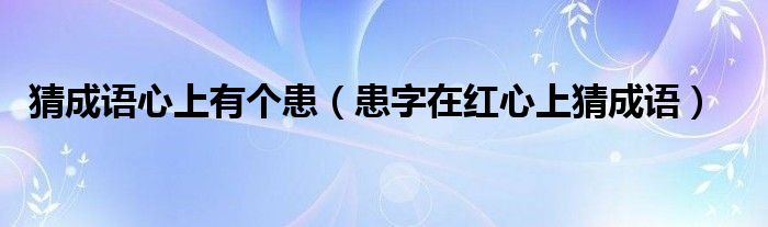 大家好,小晋来为大家解答以下问题,关于猜成语心上有个患,患字在红心上猜成语很多人还不知道,今天让我们一起来看看吧!