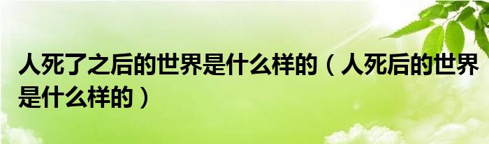 关于人死了之后的世界是什么样的,人死后的世界是什么样的这个很多人还不知道,今天菲菲来为大家解答以上的问题,现在让我们一起来看看吧!
