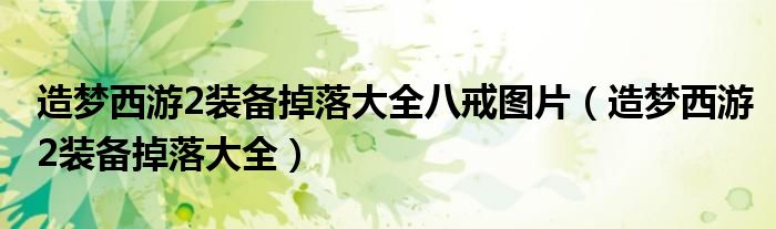 造梦西游2装备掉落大全八戒图片(造梦西游2装备掉落大全)