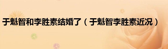关于于魁智和李胜素结婚了,于魁智李胜素近况这个很多人还不知道,今天菲菲来为大家解答以上的问题,现在让我们一起来看看吧!