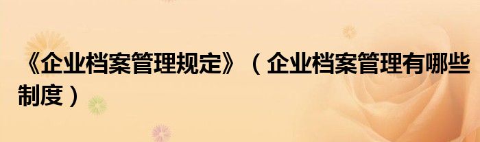 关于《企业档案管理规定》,企业档案管理有哪些制度这个很多人还不知道,今天菲菲来为大家解答以上的问题,现在让我们一起来看看吧!