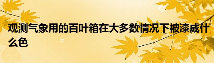 关于观测气象用的百叶箱在大多数情况下被漆成什么色这个很多人还不知道,今天菲菲来为大家解答以上的问题,现在让我们一起来看看吧!