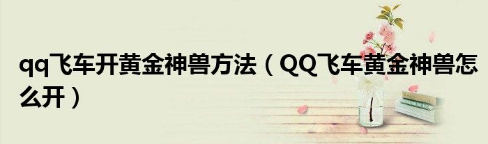 qq飞车开黄金神兽方法(QQ飞车黄金神兽怎么开)
