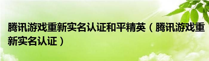 大家好,小晋来为大家解答以下问题,关于腾讯游戏重新实名认证和平精英,腾讯游戏重新实名认证很多人还不知道,今天让我们一起来看看吧!
