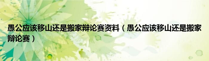 关于愚公应该移山还是搬家辩论赛资料,愚公应该移山还是搬家辩论赛这个很多人还不知道,今天菲菲来为大家解答以上的问题,现在让我们一起来看看吧!
