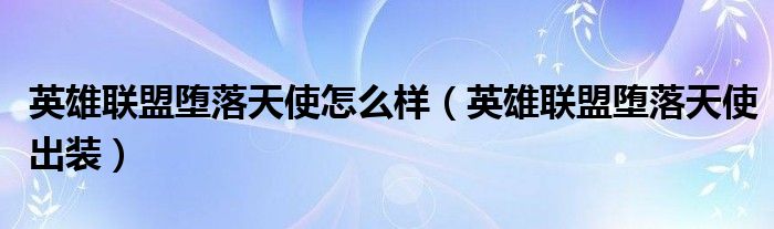 英雄联盟堕落天使怎么样,英雄联盟堕落天使出装很多人还不知道,乐乐来为大家解答以上问题,现在让我们一起来看看吧!