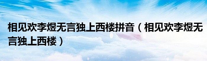 关于相见欢李煜无言独上西楼拼音,相见欢李煜无言独上西楼这个很多人还不知道,今天菲菲来为大家解答以上的问题,现在让我们一起来看看吧!