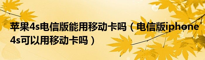大家好,来宝来为大家解答以下问题,苹果4s电信版能用移动卡吗,电信版iphone4s可以用移动卡吗很多人还不知道,今天让我们一起来看看吧!